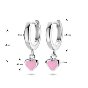 Gerhodineerd 925 zilveren klapoorringen met een diameter van 11mm. De oorringen zijn uitgevoerd met een hartje van 4.5x5mm.