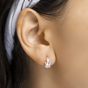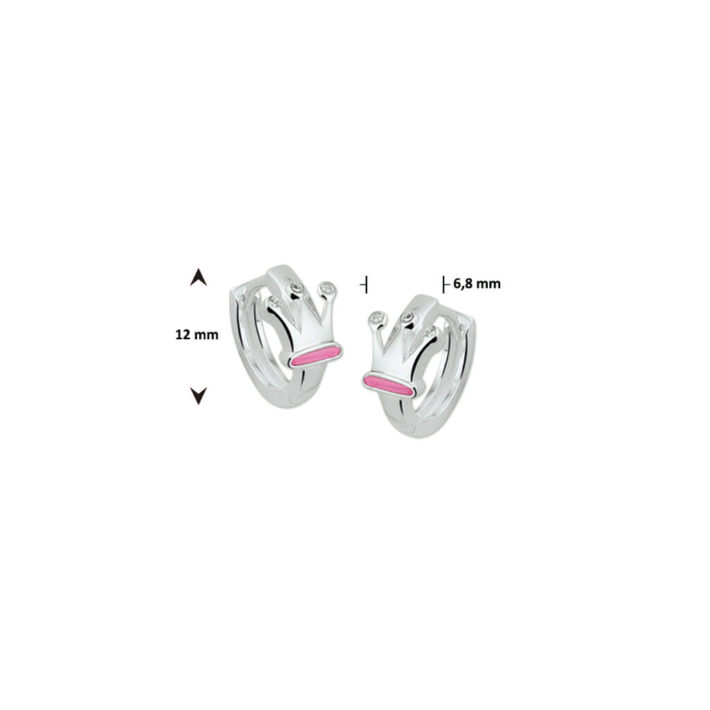 Zilveren klapoorringen met een kroontje van emaille en zirkonia. De klapoorringen zijn onderdeel van een set.