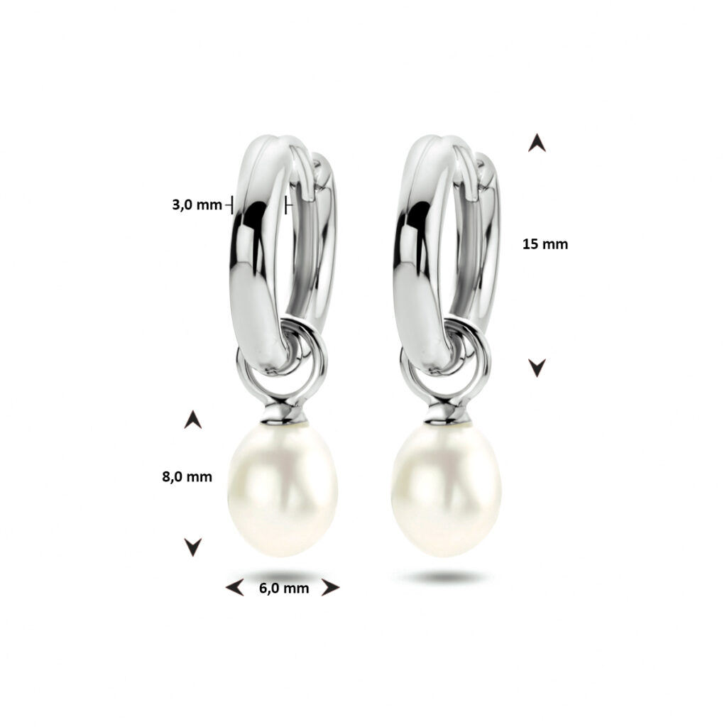 Gerhodineerd zilveren oorringen met een zoetwaterparel.