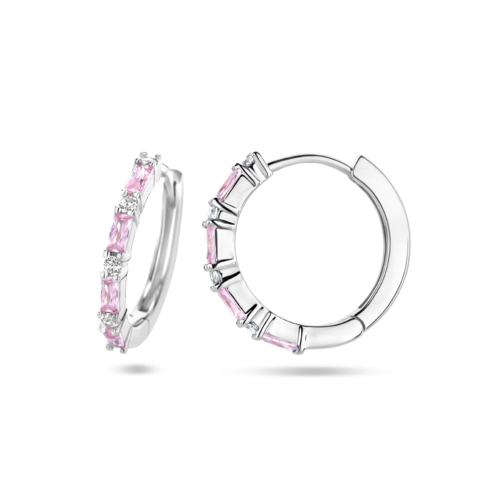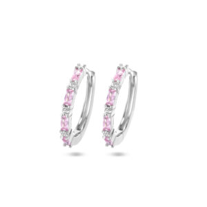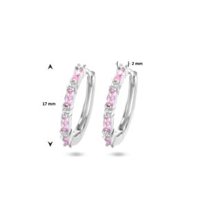 Gerhodineerd 925 zilveren klapoorringen uitgevoerd met roze zirkonia. De klapoorringen hebben een afmeting van 17x2mm.