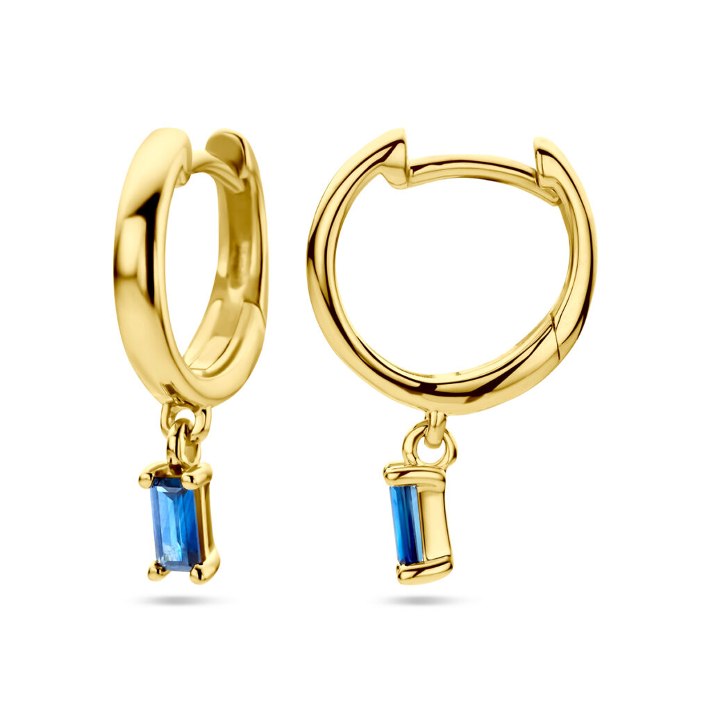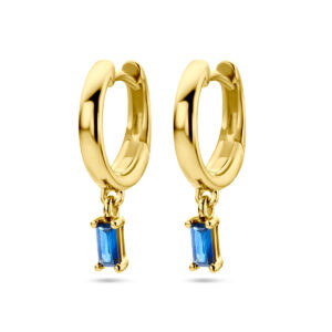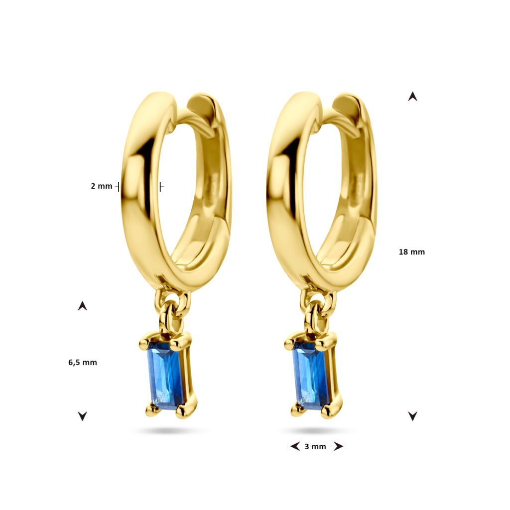 14k Geelgouden klapoorringen uitgevoerd met saffier. De klapoorringen hebben een totale hoogte van 18mm.
