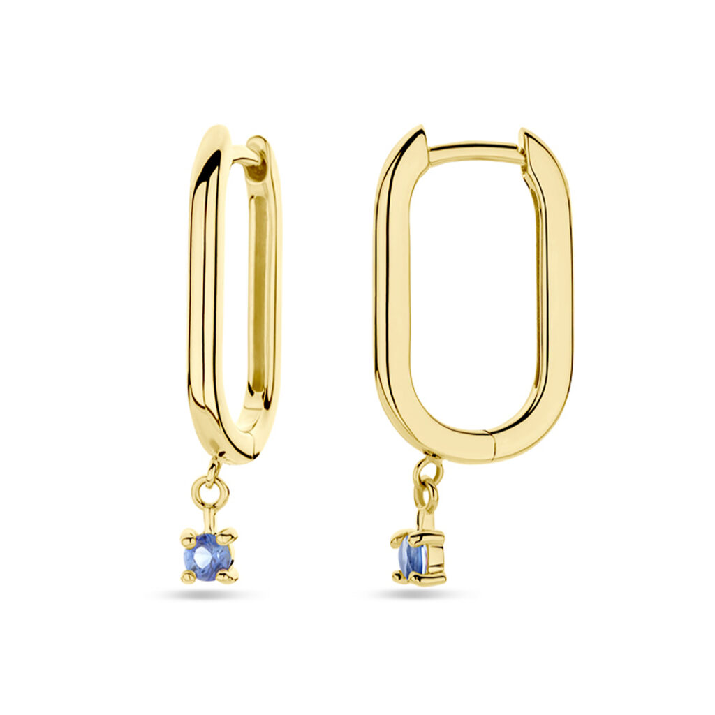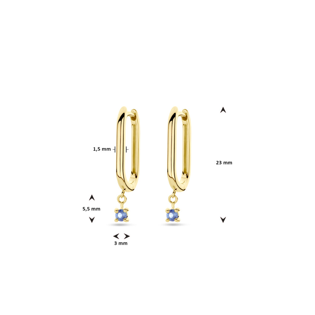 14k Geelgouden klapoorringen uitgevoerd met saffier. De steen heeft een diameter van 3mm.