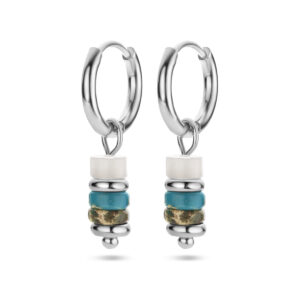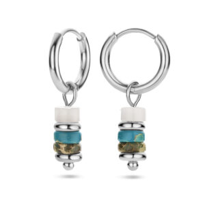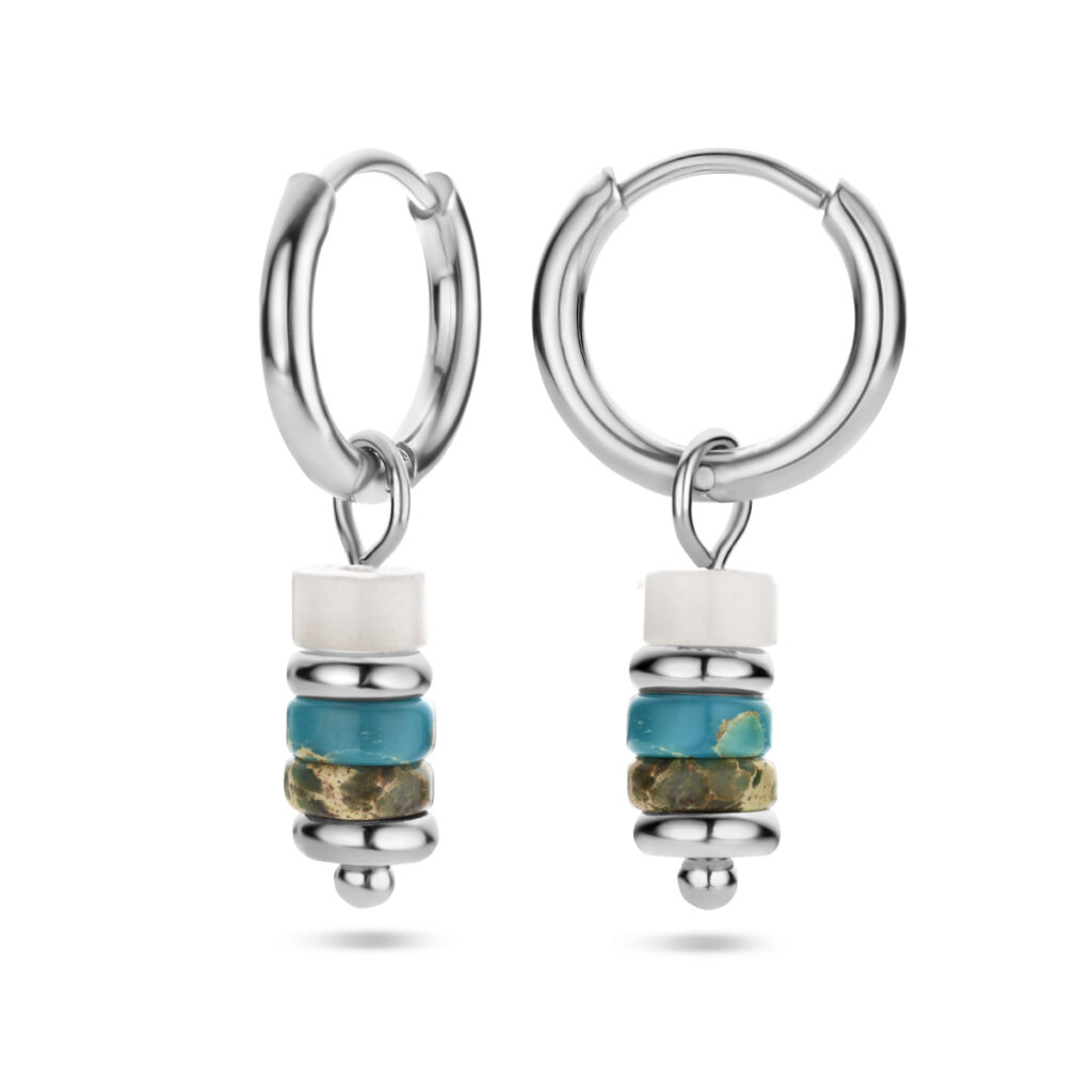 Stalen oorringen uitgevoerd met synthetische kleurstenen. De oorringen hebben een diameter van 11.5mm.