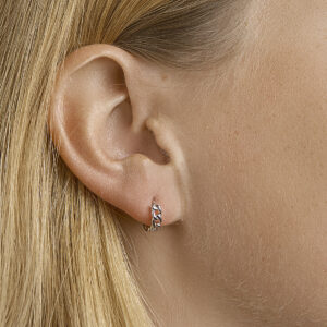 Trendy gerhodineerd zilveren klapoorringen met een schakelmotief en een stevige scharniersluiting. De klapoorringen zijn goed te combineren met bijpassende sieraden uit onze collectie. Info: Gerhodineerd zilver is door de rhodiumlaag beter bestand tegen verkleuren en krassen.