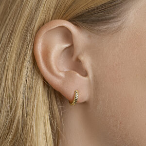 Trendy geelgoud op zilveren klapoorringen met een poli afwerking en een stevige scharniersluiting. De klapoorringen zijn goed te combineren met bijpassende sieraden uit onze collectie. Van deze oorringen is een variant met 1 micron goud plating beschikbaar. Onderaan deze pagina vindt u dit artikel.