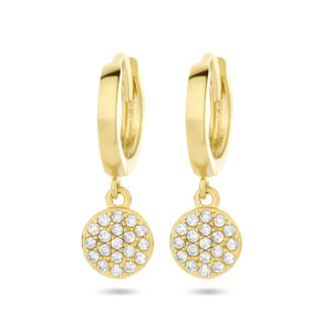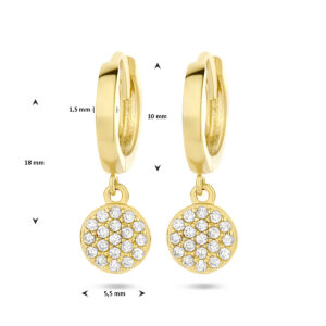 14k Geelgouden klapoorringen uitgevoerd met zirkonia. De klapoorringen hebben een totale hoogte van 18mm.