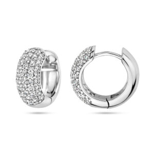 Deze Zilveren Klapoorringen met Zirkonia – Small zijn vervaardigd uit 925 Sterling zilver, dat is voorzien van een coating van Rhodium. Deze oorringen hebben een metaalgewicht van circa 2,98 gram. De creolen zijn voorzien van pave gezette, briljant geslepen, transparante Zirkonia steentjes. De diameter van de oorringen is 15,5 mm bij een breedte van 4 mm.