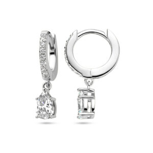 Gerhodineerd 925 zilveren klapoorringen uitgevoerd met zirkonia. De oorringen hebben een totale hoogte van 20mm.