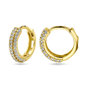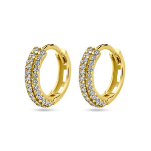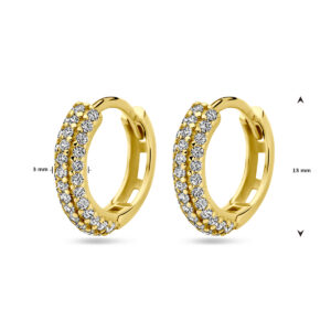 14k Geelgouden klapoorringen uitgevoerd met zirkonia. De klapoorringen hebben een afmeting van 13x3mm.
