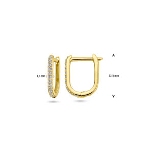 14k Geelgouden klapoorringen uitgevoerd met zirkonia. De klapoorringen hebben een afmeting van 12.5×1.5mm.