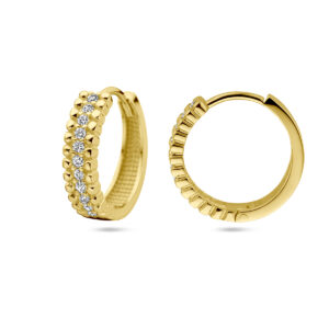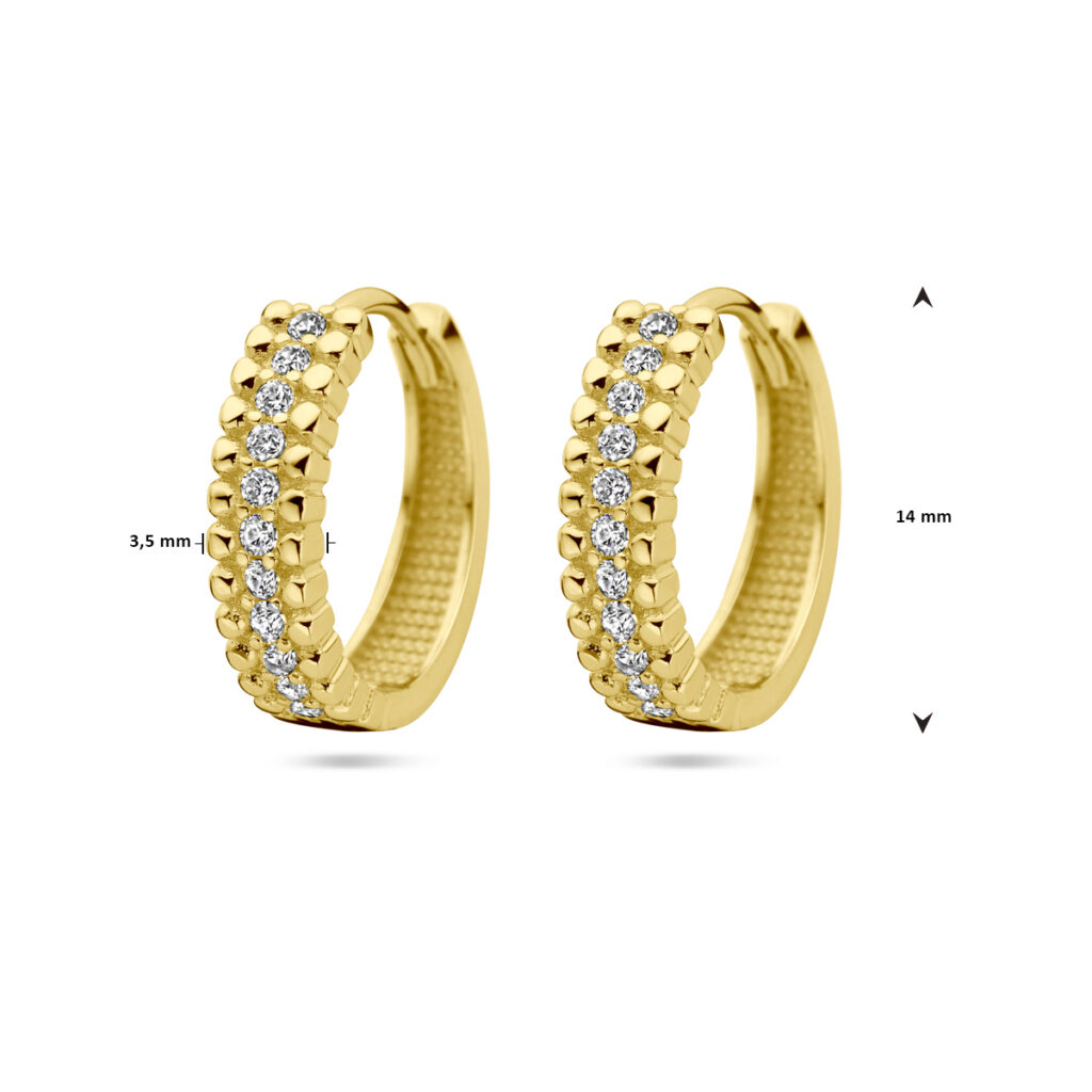 14k Geelgouden klapoorringen uitgevoerd met zirkonia. De oorringen hebben een diameter van 14mm.