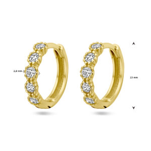 14k Geelgouden klapoorringen uitgevoerd met zirkonia. De klapoorringen hebben een afmeting van 13×2.8mm.