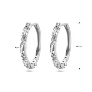 Gerhodineerd 925 zilveren klapoorringen uitgevoerd met zirkonia. De klapoorringen hebben een afmeting van 18.5x2mm.