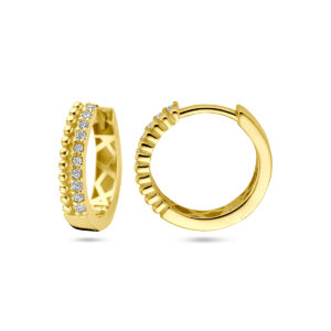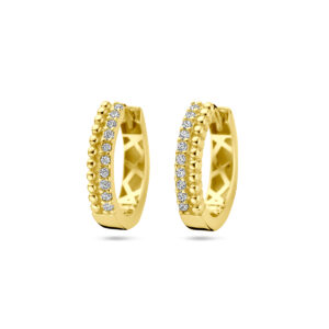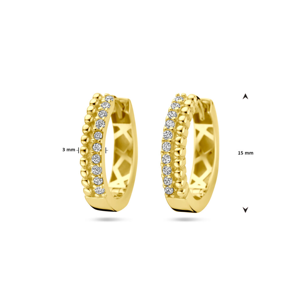 14k Geelgouden klapoorringen uitgevoerd met zirkonia. De klapoorringen hebben een afmeting van 15x3mm.
