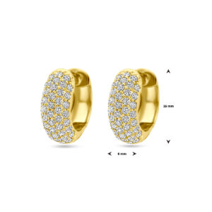 Geelgoud op 925 zilveren klapoorringen uitgevoerd met zirkonia. De klapoorringen hebben een afmeting van 16x6mm. Geen garantie op de plating.