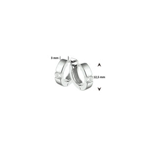 Deze Luxe Klapcreolen van Gerhodineerd Zilver met Zirkonia’s zijn volledig gemaakt van 925 sterling zilver, de allerbeste kwaliteit zilver, en voorzien van een gepolijst oppervlak met een laagje rhodium en kleurloze zirkonia’s. Deze zilveren klapcreolen bestaan uit een vlakke band met daarin verwerkt een kleurloze zirkonia die mooi glinstert. Deze creolen zijn fijntjes gepolijst en dus voorzien van een mooie glans die extra lang behouden blijft dankzij het laagje rhodium, waardoor u extra lang van dit mooie sieraad kunt genieten. Daarnaast zijn deze creolen voorzien van een handig klapsysteem, waardoor u deze klapcreolen gemakkelijk in- en uitdoet. Deze klapcreolen hebben een breedte van 3mm met een hoogte van 12,5mm en zijn speciaal voor dames.