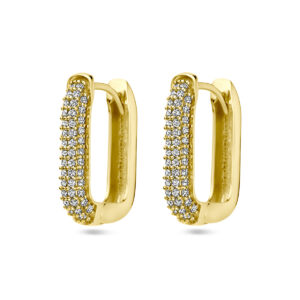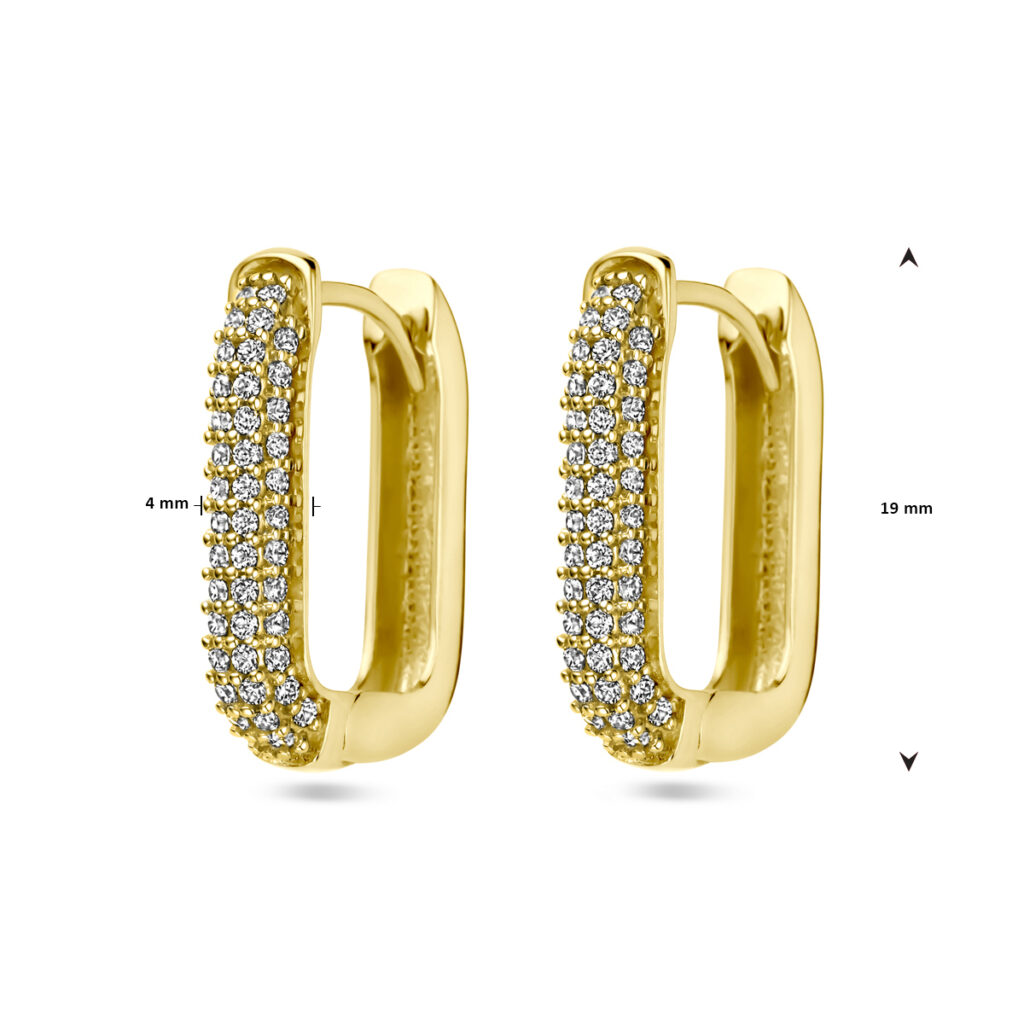 14k Geelgouden klapoorringen uitgevoerd met zirkonia. De klapoorringen hebben een afmeting van 19x4mm.