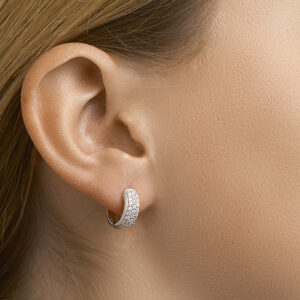Gerhodineerd zilveren klapoorringen met zirkonia. De oorringen zijn onderdeel van een set.