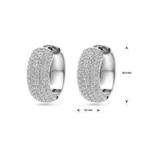 Gerhodineerd 925 zilveren klapoorringen uitgevoerd met zirkonia. De klapoorringen hebben een afmeting van 20.5×8.5.