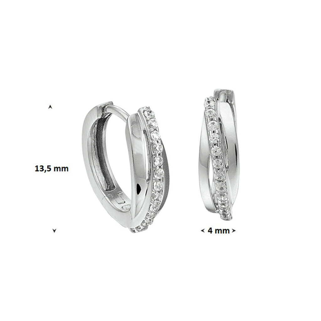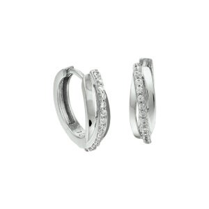 Gerhodineerd zilveren klapoorringen met een afmeting van 13.5×4.2mm uitgevoerd met een luxe rijzetting van briljant geslepen zirkonia.