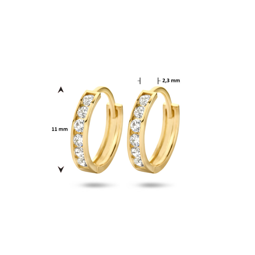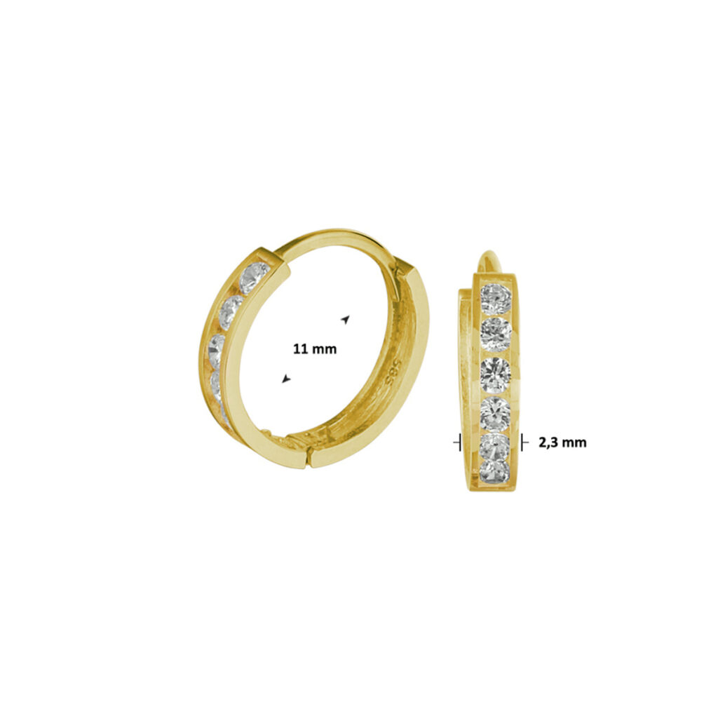 14k Geelgouden klapoorringen uitgevoerd met een schitterende zirkonia rij. De afmeting van de oorringen is 11×2.3mm.