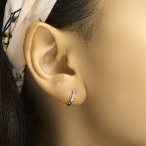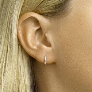 Gerhodineerd 925 zilveren oorringen met scharnier uitgevoerd met een heldere zirkonia rij. De oorringen hebben een diameter van 9mm.