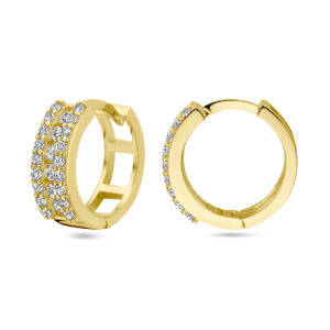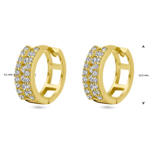14k Geelgouden klapoorringen uitgevoerd met zirkonia. De klapoorringen hebben een afmeting van 12.5×4.1mm.