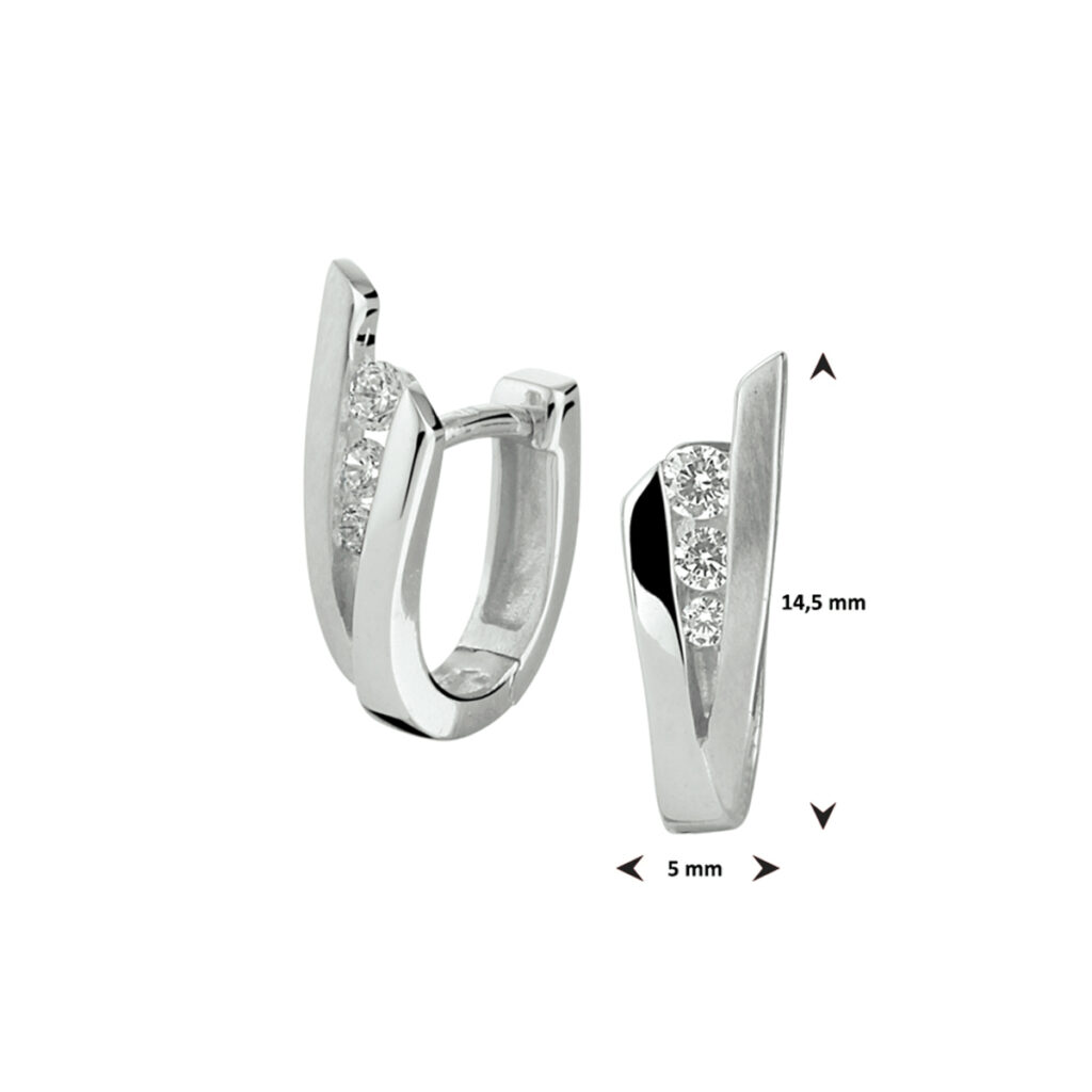 Gerhodineerd 925 zilveren klapoorringen uitgevoerd met een schitterende zirkonia rij. De klapoorringen hebben een afmeting van 14.5x5mm.
