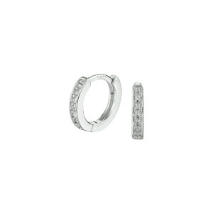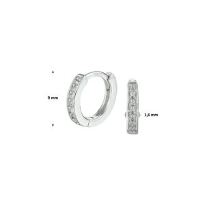 Gerhodineerd 925 zilveren oorringen met scharnier uitgevoerd met een heldere zirkonia rij. De oorringen hebben een diameter van 9mm.