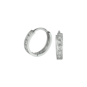 14k Witgouden oorringen met scharnier uitgevoerd met een zirkonia rij. De afmeting van de oorringen is 11×2.3mm.