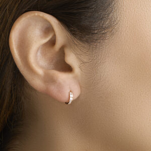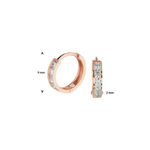 14k Rosegouden oorringen met scharnier uitgevoerd met een zirkonia rij. De afmeting van de oorringen is 9x2mm.