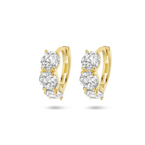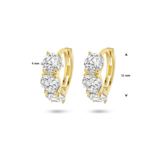 Geelgoud op 925 zilveren klapoorringen uitgevoerd met wit zirkonia. De klapoorringen hebben een afmeting van 11x4mm. Geen garantie op de plating.