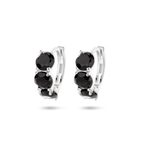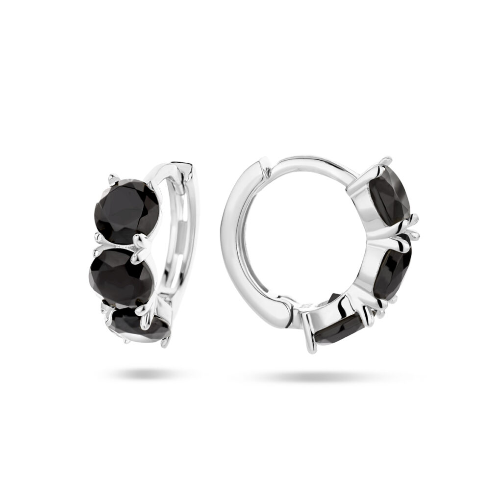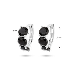 Gerhodineerd 925 zilveren klapoorringen uitgevoerd met zwart zirkonia. De klapoorringen hebben een afmeting van 11x4mm.