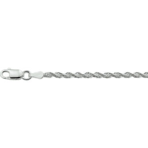 Zilveren lengte artikel met koord schakel. De schakelbreedte is 2.5mm.