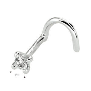 Gerhodineerd 925 zilveren neusknopje uitgevoerd met een schitterende zirkonia. Het neusknopje heeft een diameter van 2.5mm.