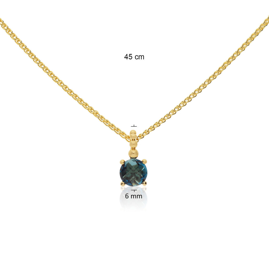 Dit 14 karaat gouden collier van Glow is een echte eyecatcher door de prachtige 14 karaat hanger met Blauw Topaas in een vierkante zetkast, gedetailleerd met 4 verdikte pootjes en een sierlijk hangoog. Het geelgouden vossenstaart collier is 45cm. De hanger heeft een doorsnee van 1cm. Combineer het collier met de andere sieraden van Glow voor een complete look.