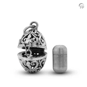 Deze ashanger onderscheidt zich van het assortiment van Limbo door zijn materiaal. De ashanger is van zilver en is gevuld met een speciale capsule waar een kleine, symbolische hoeveelheid as in bewaard kan worden. De hanger wordt geleverd met een bijpassende RVS ketting.