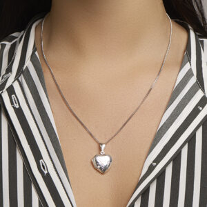 Dit Hartvormige Fotomedaillon met Decoratief Patroon is volledig gemaakt van 925 sterling zilver, de allerbeste kwaliteit zilver, en heeft op het breedste punt een breedte van 20mm met een hoogte van 19mm. Dit medaillon bestaat uit een hartvormig plaatje dat opengedaan kan worden, met binnenin ruimte voor twee foto’s. Het medaillon is voorzien van een gepolijst oppervlak met aan de voorkant een decoratief patroon dat zeker niet snel zal gaan vervelen. Deze hanger is voornamelijk geschikt voor dames en is bijzonder leuk als romantisch cadeau. Tevens behoort deze hanger tot onze huiscollectie, waardoor u verzekerd bent van de allerbeste kwaliteit tegen de scherpste prijs!
