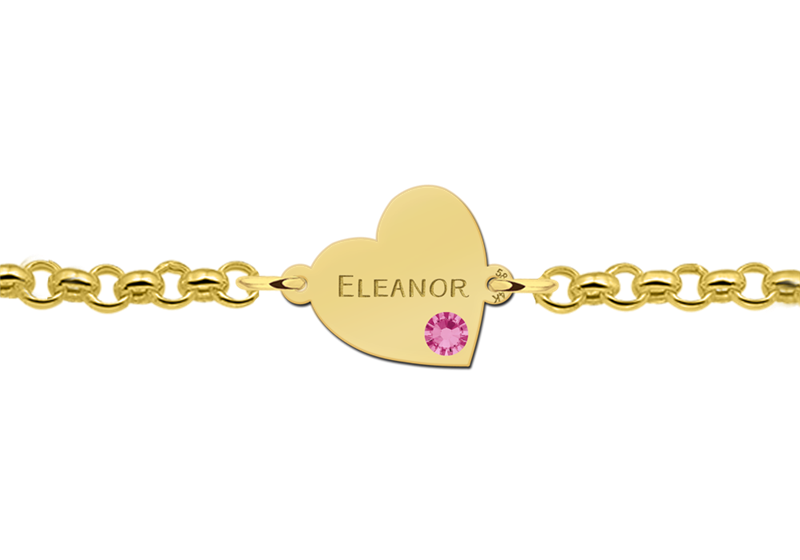 Deze armband met gekanteld hartje en geboortesteen is volledig gemaakt van 14 karaats goud, de allerbeste kwaliteit goud, met een fijntjes gepolijst oppervlak dat mooi glanst. De armband bestaat uit meerdere slanke schakels die fijntjes op elkaar aansluiten en die samen een stijlvol geheel vormen. De armband is verstelbaar in de lengtes 17cm, 18cm, 19cm en 20cm,  met aan de voorkant een gekanteld hartje, dat voorzien kan worden van een naam naar keuze en dat onderin voorzien is van een geboortesteen, waarvan u de kleur bepaalt. Het hartje heeft een afmeting van 13,5×13,5mm met een dikte van 0,4mm. Aan de achterkant is de armband voorzien van een handige karabijnsluiting, waardoor u deze armband gemakkelijk om- en afdoet. Bestel dit beeldschone (en romantische) sieraad vandaag nog en verras een geliefde met een persoonlijk cadeau.