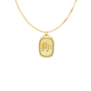 Geboren in het jaar van de hond? Dan is deze gouden hanger voor u! Deze chinees sterrenbeeld hond hanger heeft een afmeting van 17×25 mm en is gemaakt van 14-karaats goud. Op de hanger ziet u het chinese symbool voor hond met daarnaast de door u opgegeven gegraveerde naam.