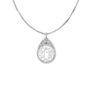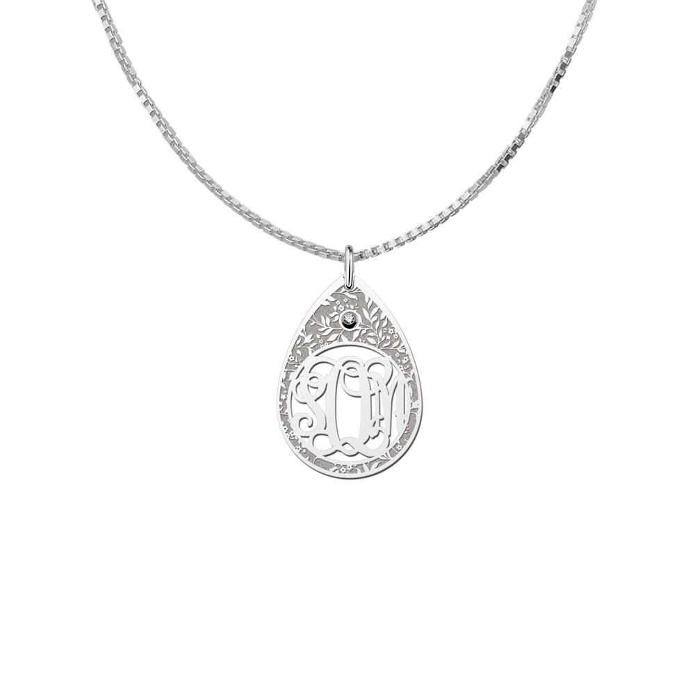 Deze stijlvolle druppel hanger monogram initiaal is gemaakt van 925 sterling zilver en heeft een totale grootte van 30×21 mm. De afwijkende druppel vorm van deze hanger maakt het tot een leuk sieraad dat te personaliseren is met uitgespaarde, door u doorgegeven letters. Om de letters heen is de druppel versierd met sierlijke takjes en bladjes, wat voor een vredige en natuurlijke uitstraling zorgt.