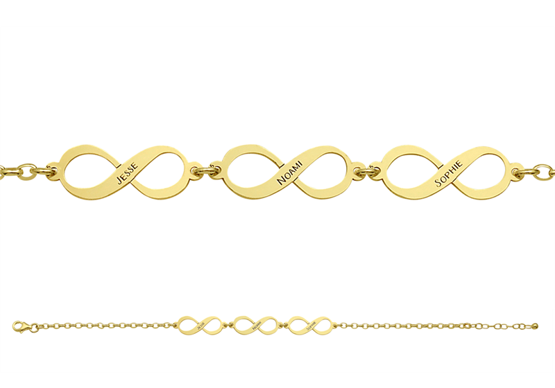 Names4Ever Gouden Infinity Armband met Drie Namen