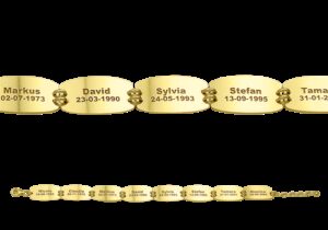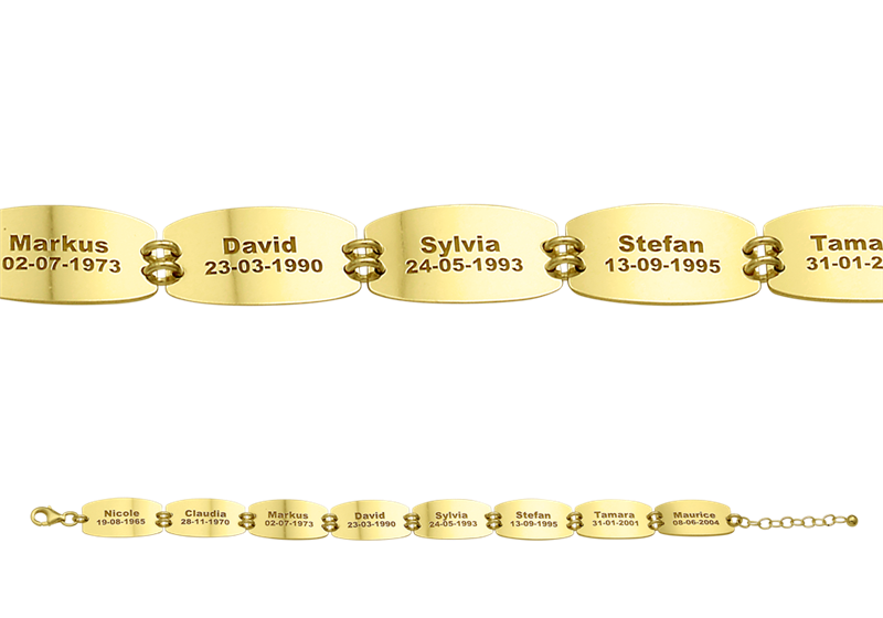 Names4ever Gouden Naamarmband met Acht Graveerplaatjes GNA60