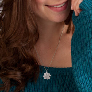 Deze Zilveren Klaverhanger met Vingerafdruk + Naam en Datum is afkomstig van Names4ever, het merk dat bekend staat om hun gepersonaliseerde sieraden. Zo kunt u bij deze stijlvolle klaverhanger, bestaande uit een 925 sterling zilveren hanger in de vorm van een klavertjevier, een vingerafdruk naar keuze doorgeven die vervolgens in detail op de hanger gegraveerd zal worden met een mooi egaal lijntje langs de rand. Daarnaast kunt u zelfs een naam en datum doorgeven die op de twee linkerblaadjes geplaatst zullen worden, net naast de vingerafdruk. Uw persoonlijke tekst en vingerafdruk worden dus speciaal voor u bewerkt door een ervaren edelsmid en vervolgens op de zilveren klaverhanger geplaatst in een professioneel atelier. Een persoonlijk en uniek sieraad dat bijzonder leuk is om te geven. Deze Zilveren Klaverhanger met Vingerafdruk + Naam en Datum heeft een formaat van 21x22mm en een dikte van 0,4mm. Deze zilveren klaverhanger wordt geleverd zonder bijpassende ketting, dus vergeet vooral niet om er één bij te bestellen zodat u deze hanger meteen na ontvangst kunt dragen!