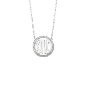 Deze medium monogram initialen ketting heeft een diameter van 33 mm en is gemaakt van 925 sterling zilver, waardoor het een opvallend, kwalitatief sieraad is. U kunt bij deze medium monogram hanger met namen maar liefst zes namen en drie monogram letters aangeven die dan in het sieraad verwerkt worden voor een werkelijk persoonlijk cadeau. Bij deze hanger krijgt u ook een stijlvolle zilveren ketting met jasseron schakel van 45 cm.