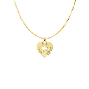 Deze ruiter naamhanger hart heeft een diameter van 20 mm en is gemaakt van 14-karaats goud. De naamhanger is in de vorm van een hart met een hoefijzer verwerkt in het oogje, een uitgespaard paard in het midden met daarop een ruiter en aan beide kanten een naam.