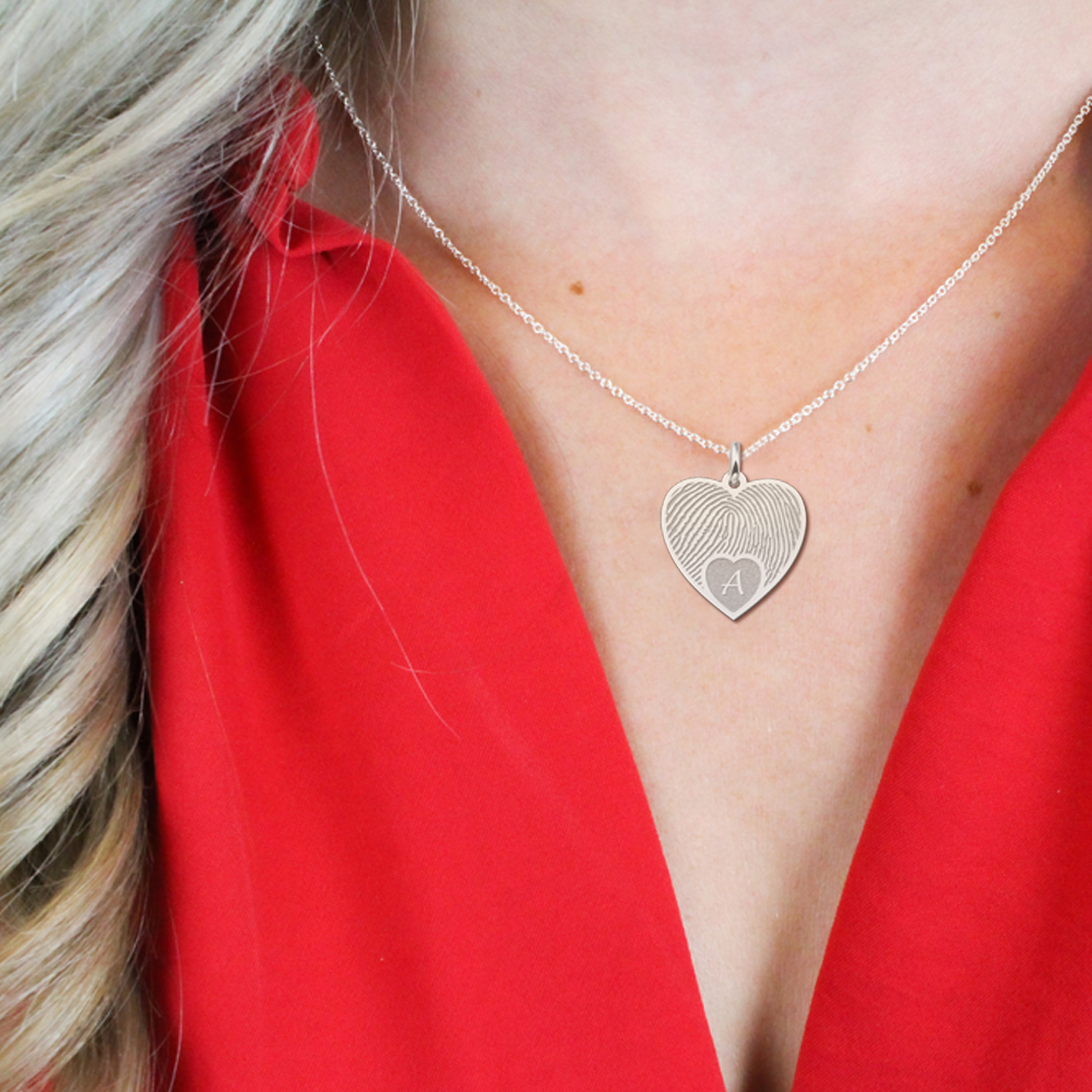 Deze Zilveren Harthanger met Vingerafdruk en Initiaal is afkomstig van Names4ever, het merk dat bekend staat om hun gepersonaliseerde sieraden. Zo kunt u bij deze stijlvolle harthanger, bestaande uit een 925 sterling zilveren hanger in de vorm van een romantisch hart, een vingerafdruk naar keuze doorgeven die vervolgens in detail op de hanger gegraveerd zal worden met een mooi egaal lijntje langs de rand. Daarnaast kunt u zelfs een initiaal doorgeven die onderin de hanger in een dieperliggend egaal hart geplaatst zal worden en er mooi uitspringt. Uw persoonlijke initiaal en vingerafdruk worden dus speciaal voor u bewerkt door een ervaren edelsmid en vervolgens op de zilveren harthanger geplaatst in een professioneel atelier. Een persoonlijk en uniek sieraad dat bijzonder leuk is om te geven aan bijvoorbeeld een geliefde. Deze Zilveren Harthanger met Vingerafdruk en Initiaal heeft een dikte van 0,7mm. Deze zilveren harthanger wordt geleverd zonder bijpassende ketting, dus vergeet vooral niet om er één bij te bestellen zodat u deze hanger meteen na ontvangst kunt dragen!