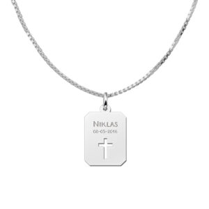 Deze Zilveren Naamhanger met Kruis is afkomstig van Names4ever, het merk dat bekend staat om hun sterk gepersonaliseerde sieraden die ook nog eens van de allerbeste kwaliteit zijn. Deze hanger is gemaakt in de vorm van een rechthoekig plaatje met een egaal glanzend oppervlak met een uitgespaard kruis en daarboven ruimte voor een te graveren naam en datum. Deze naam en datum kunt u uiteraard zelf doorgeven en deze zal vervolgens speciaal voor u op de hanger geplaatst worden door een ervaren edelsmid in een professioneel atelier. Deze zilveren naamhanger met kruis is gemaakt van 925 sterling zilver, de allerbeste kwaliteit zilver, en heeft een afmeting van 14x18mm. Vergeet vooral niet om een bijpassende ketting te bestellen zodat u deze stijlvolle hanger meteen na ontvangst kunt dragen!