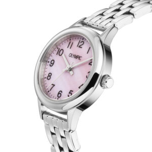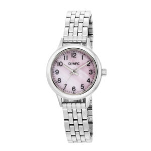 Dit unieke Olympic horloge met artikelnummer: OL80DSS001 is een dameshorloge met een chique uitstraling. Het horloge heeft een ronde stalen kast met een parelmoer wijzerplaat met cijfers. Aan de kast zit een stalen fijne schakelband met vouwsluiting. Het horloge heeft een mineraalglas, een doorsnee van 28mm en is 5ATM.