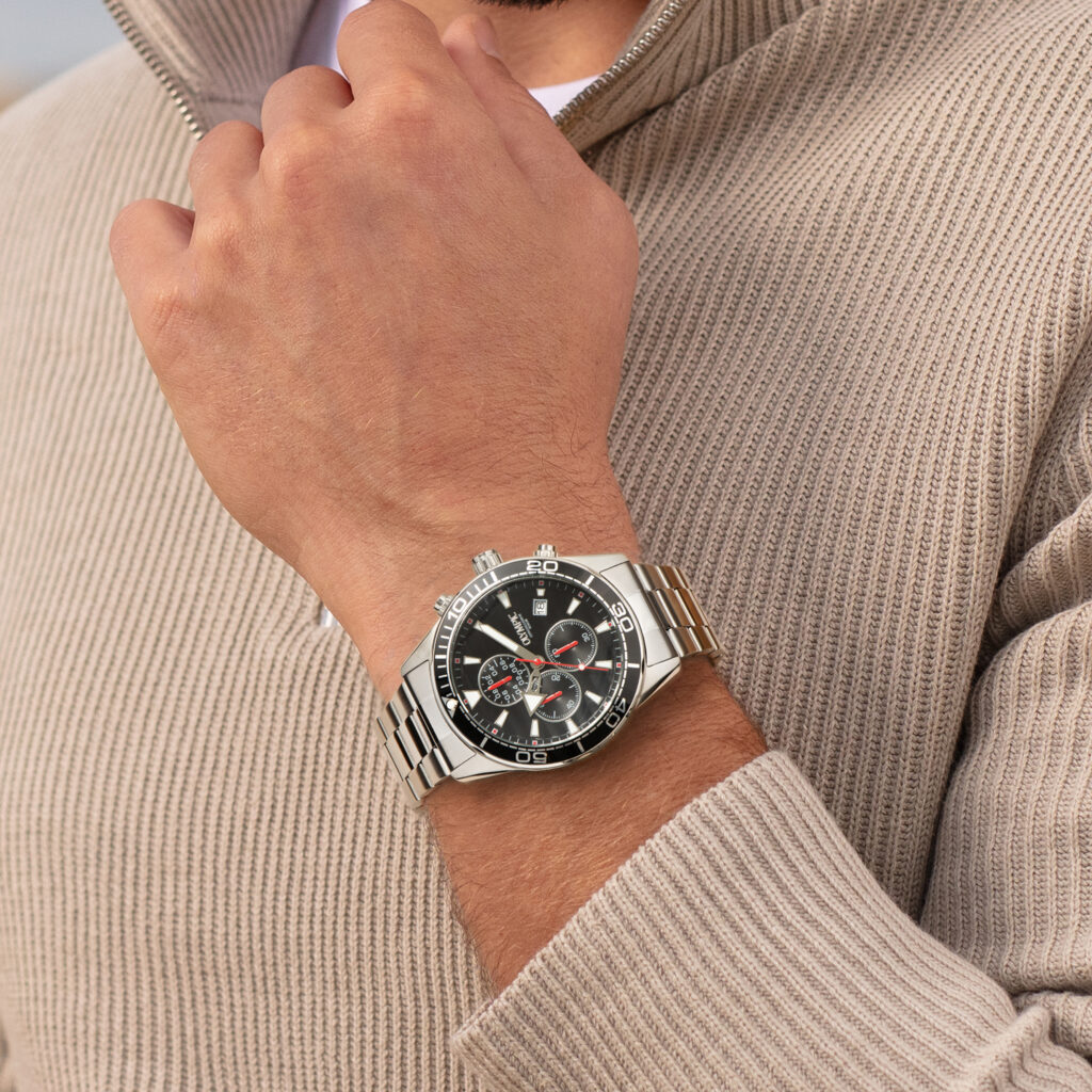 – Zilverkleurige stalen horlogekast